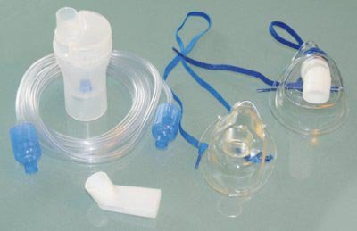 Камера небулайзерная, трубка воздушная (ПВХ), 5 сменных фильтров, загубник, насадка для носа, маска для взрослых (ПВХ) и маска для детей (ПВХ).